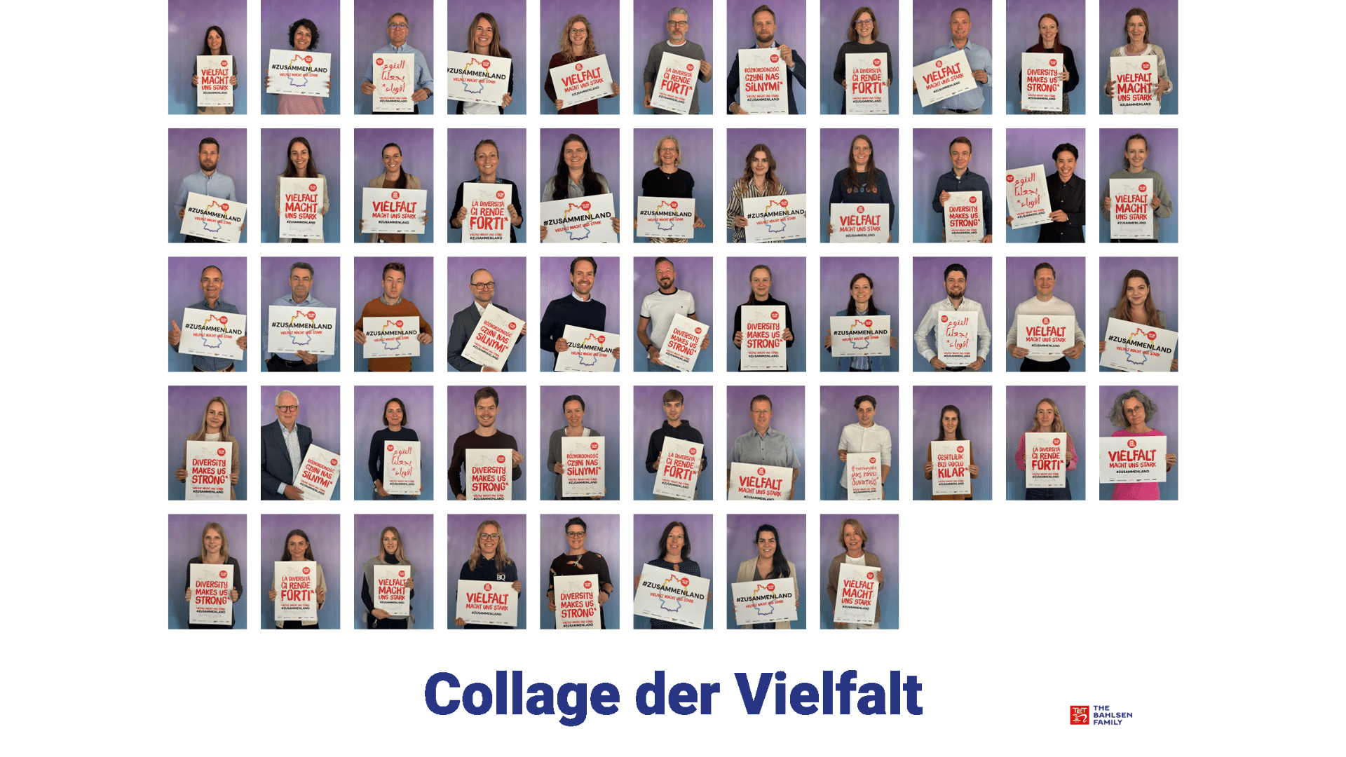 Wir engagieren uns für #Zusammenland sowohl finanziell als auch durch Bereitstellung unserer kompletten Reichweite auf Social Media. Auch unsere Mitarbeitenden beteiligen sich an den #Zusammenland-Aktionen wie beispielsweise der "Collage der Vielfalt".